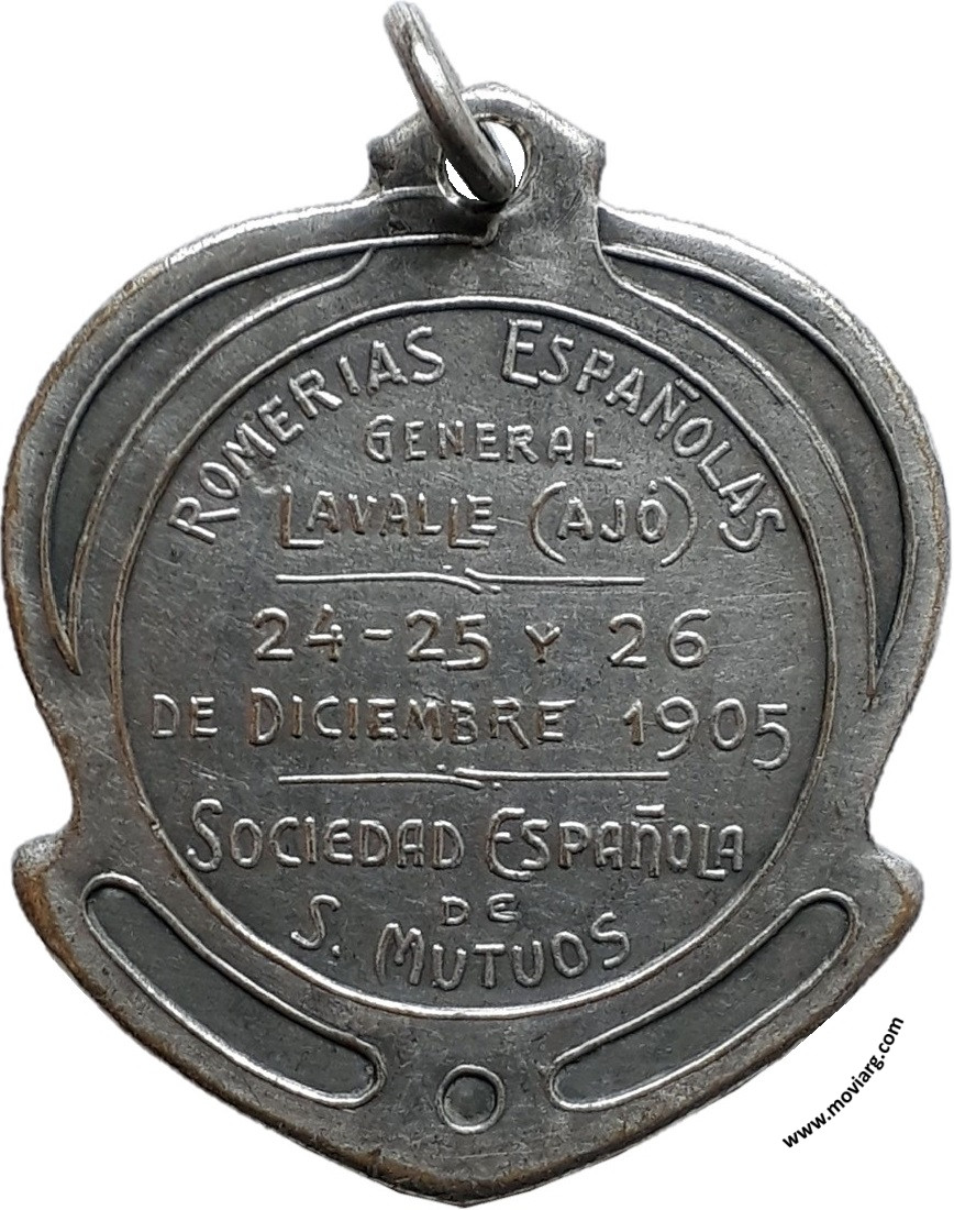 Anverso: Firma: HORTA Y CIA. Reverso: ROMERIAS ESPAÑOLAS / GENERAL / LAVALLE ( AJÓ ) / 24 - 25 Y 26 / DE DICIEMBRE 1905 / SOCIEDAD ESPAÑOLA / DE / S. MUTUOS Referencia: | |