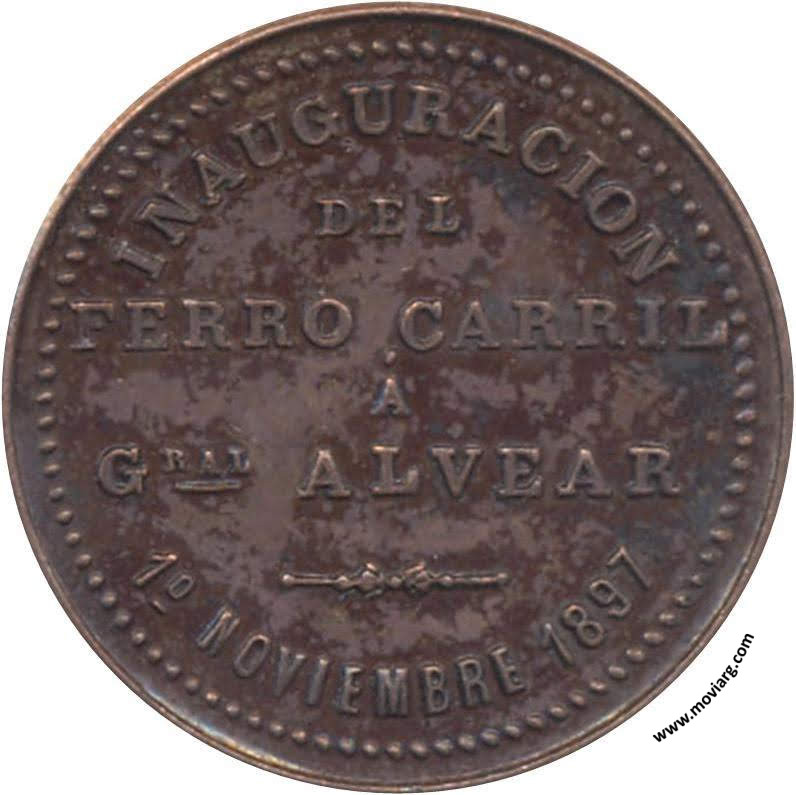 Anverso: Firma: G. Y C. Reverso: INAUGURACION / DEL / FERRO CARRIL / Á / GRAL. ALVEAR / 1° DE NOVIEMBRE 1897 Referencia: | |