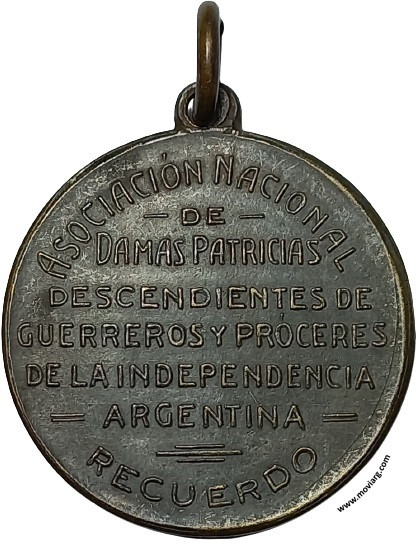 Anverso: JOSE DE SAN MARTIN. Firma: HORTA Reverso: ASOCIACIÓN NACIONAL / DE / DAMAS PATRICIAS / DESCENDIENTES DE / GUERREROS Y PRÓCERES / DE LA INDEPENDENCIA / ARGENTINA / RECUERDO Referencia: | |