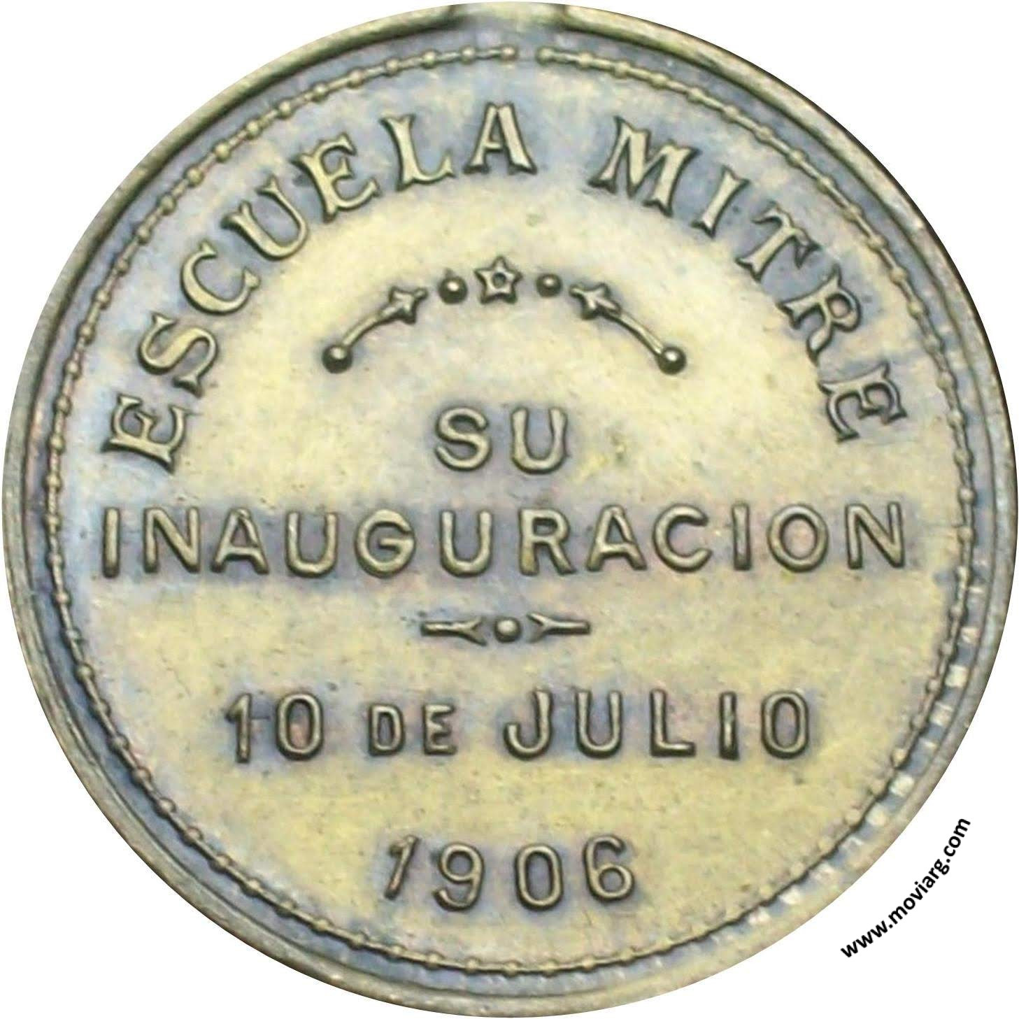 Anverso: PROVINCIA DE MENDOZA Reverso: ESCUELA MITRE / SU / INAUGURACION / 10 DE JULIO / 1906 Referencia: | |