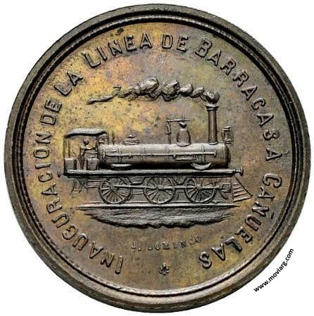 | Año: 1885 Ferrocarriles Metal: Cobre - Módulo: 33mm Grabador: José Domingo | |