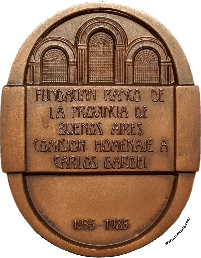 Anverso: Firma: GIANNETTI / CG Reverso: FUNDACION BANCO DE / LA PROVINCIA DE / BUENOS AIRES / COMISION HOMENAJE A / CARLOS GARDEL / 1935 - 1985. Firma: GIANNETTI / PIANA - BUENOS AIRES Referencia: | |