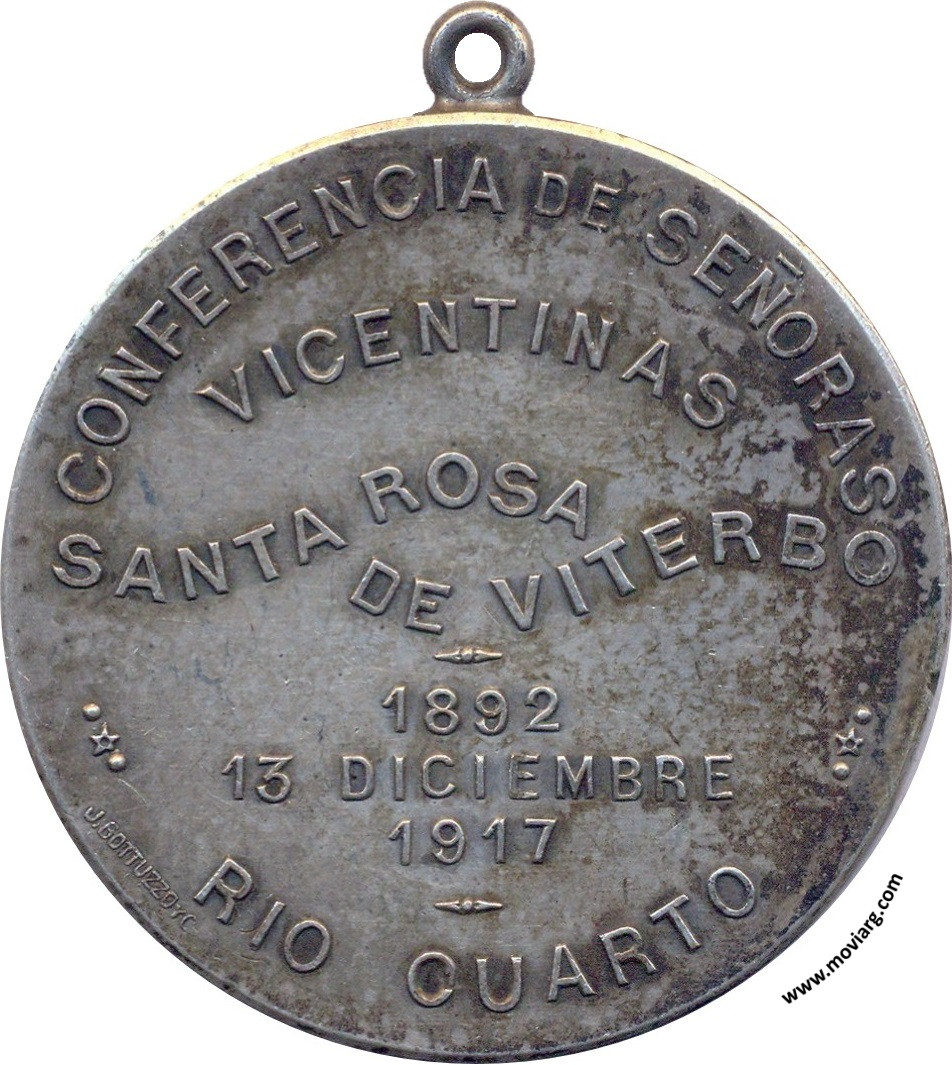 Anverso: SAGRADA FAMILIA Reverso: CONFERENCIA DE SEÑORAS / VICENTINAS / SANTA ROSA / DE VITERBO / 1892 / 13 DICIEMBRE / 1917 / RIO CUARTO. Firma: J. GOTTUZZO Y CA. Referencia: | |
