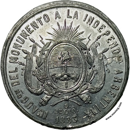 | Año: 1883 Política y Gobierno Metal: Peltre - Peso: 17.36gr - Módulo: 31mm - Espesor: 2.9mm - Rotación: 6hrs Grabador: Santiago Caccia | |