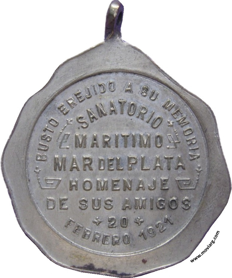 Anverso: DOCTOR J. / HECTOR JARA. Firma: CONST. ROSSI Reverso: BUSTO EREJIDO A SU MEMORIA / SANATORIO / MARITIMO / MAR DEL PLATA / HOMENAJE / DE SUS AMIGOS / 20 / FEBRERO 1921 Referencia: | |