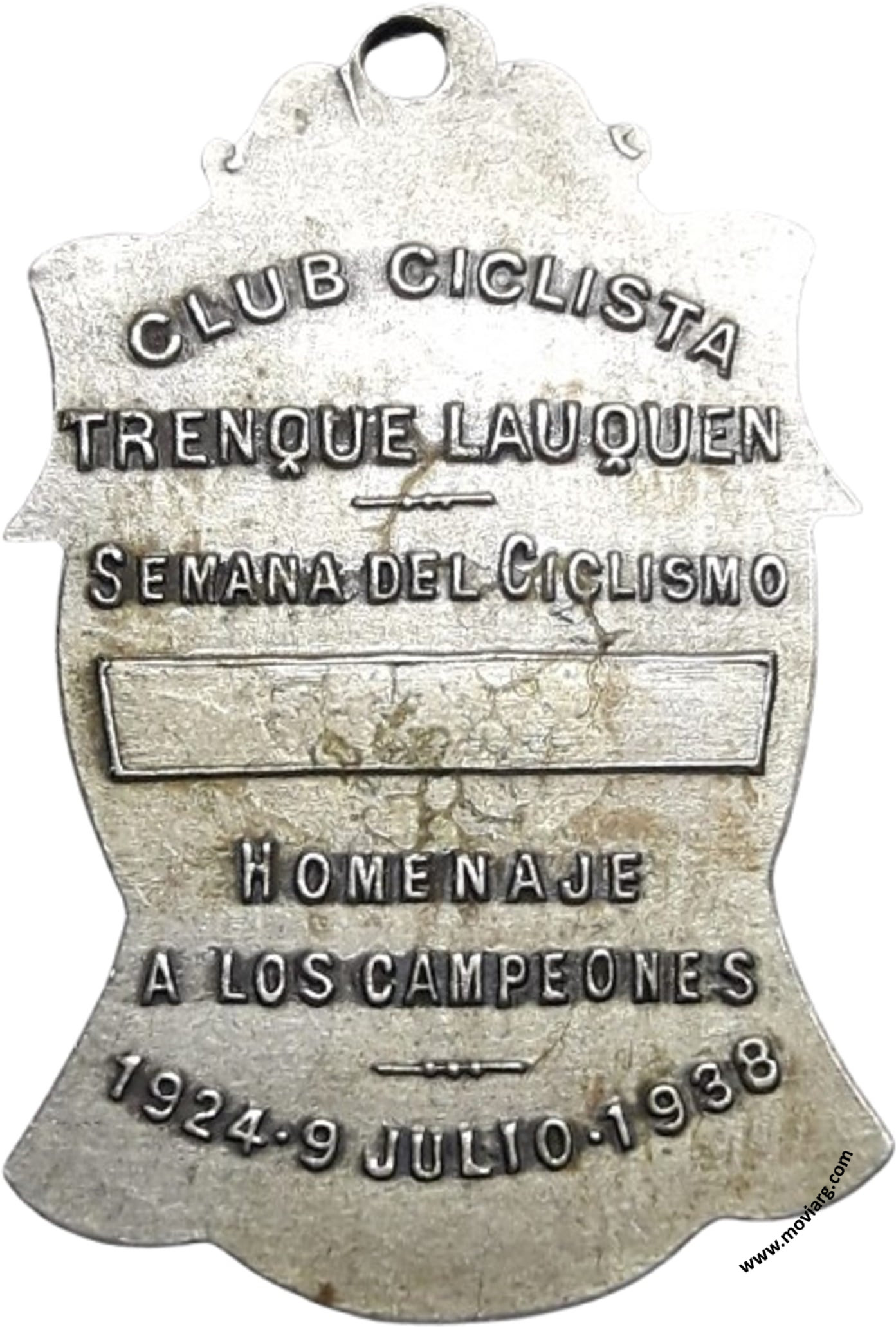 Anverso: Reverso: CLUB CICLISTA / TRENQUE LAUQUEN / SEMANA DEL CICLISMO / HOMENAJE / A LOS CAMPEONES / 1924 · 9 JULIO · 1938 Referencia: | |