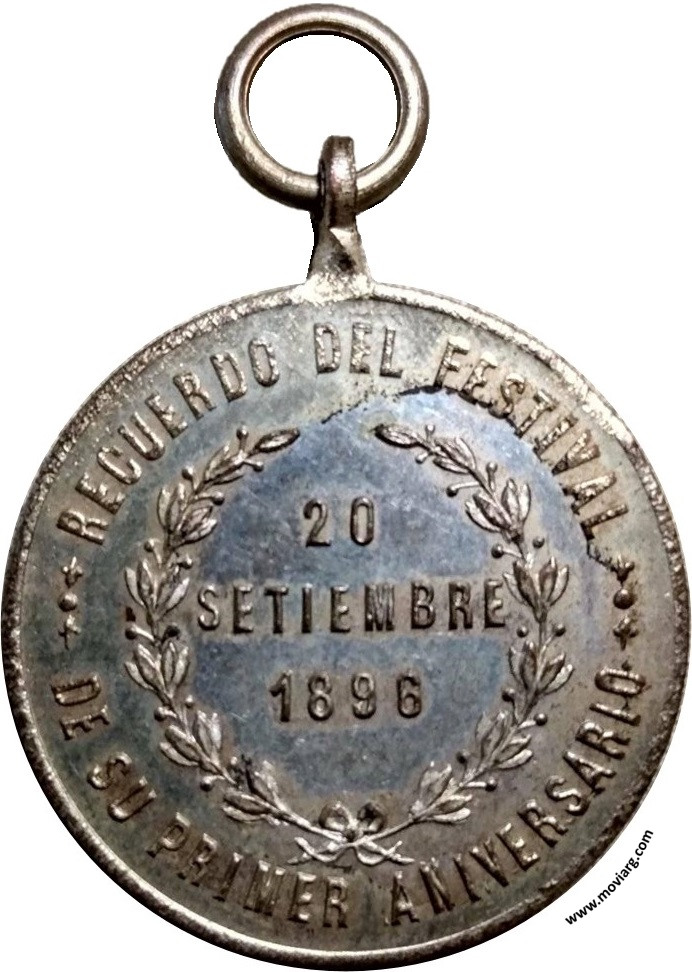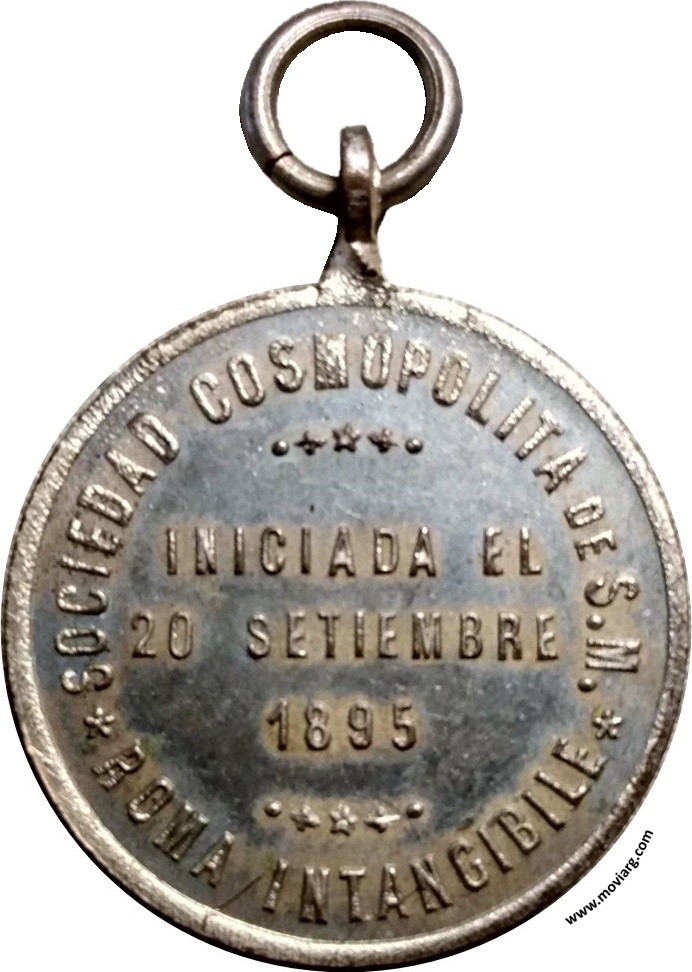 Colección @parryyanumismatico Anverso: RECUERDO DEL FESTIVAL / DE SU PRIMER ANIVERSARIO / 20 / SETIEMBRE / 1896Reverso: SOCIEDAD COSMOPOLITA / ROMA INTANGIBLE / INICIADA EL / 20 / SETIEMBRE / 1895 Referencia: | |