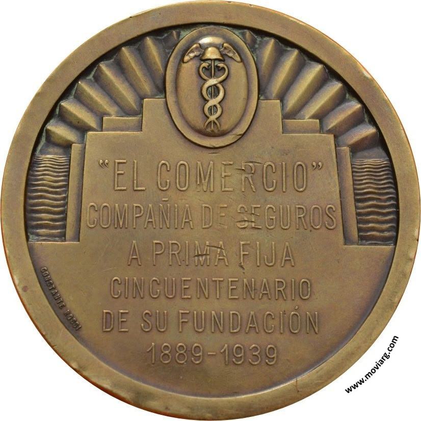 Anverso: Firma: LUIS PERLOTTI Reverso: " EL COMERCIO " / COMPAÑIA DE SEGUROS / A PRIMA FIJA / CINCUENTENARIO / DE SU FUNDACIÓN / 1889 - 1939. Firma: CONSTANTE ROSSI Referencia: | |