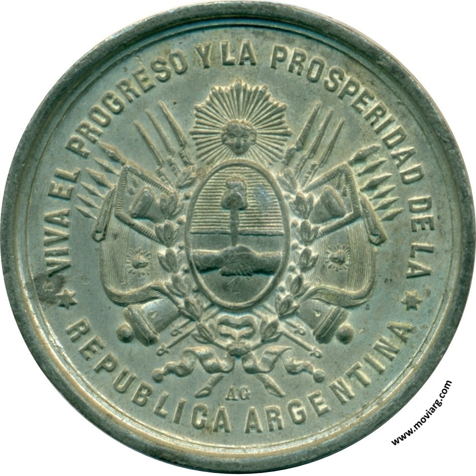 Anverso: RECUERDO DEL CARNAVAL DE / 1872 / PALACIO DE LA JUSTICIA / BUENOS AIRES Reverso: VIVA EL PROGRESO Y LA PROSPERIDAD DE LA / REPUBLICA ARGENTINA. Firma: A.G. Referencia: ROSA-578 | |
