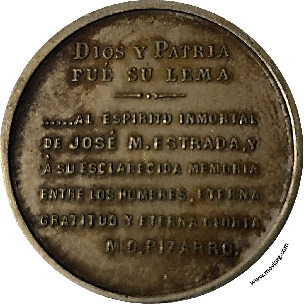 Anverso: JOSÉ ML. / ESTRADA. Firma: ORZALI, BELLAGAMBA Y C. / BUENOS AIRES Reverso: DIOS Y PATRIA / FUÉ SU LEMA / ..... AL ESPIRITU INMORTAL / DE JOSÉ M. ESTRADA, Y / Á SU ESCLARECIDA MEMORIA / ENTRE LOS HOMBRES, ETERNA / GRATITUD Y ETERNA GLORIA / M. D. PIZARRO. Referencia: | |