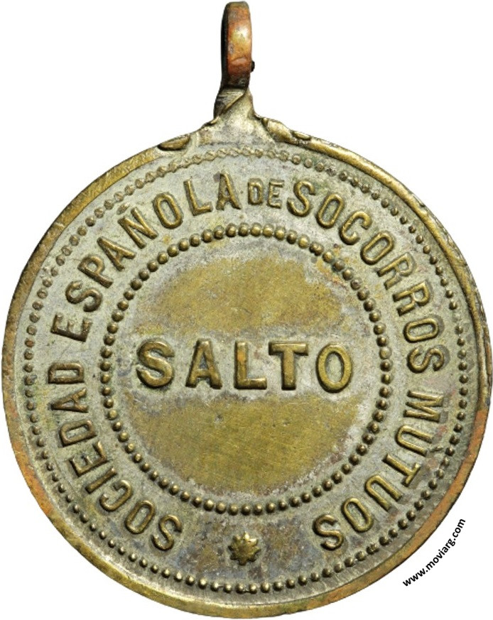 Anverso: SOCIEDAD ESPAÑOLA DE SOCORROS MUTUOS / SALTO Reverso: ROMERIA ESPAÑOLA / ENERO / DE / 1889 Referencia: | |