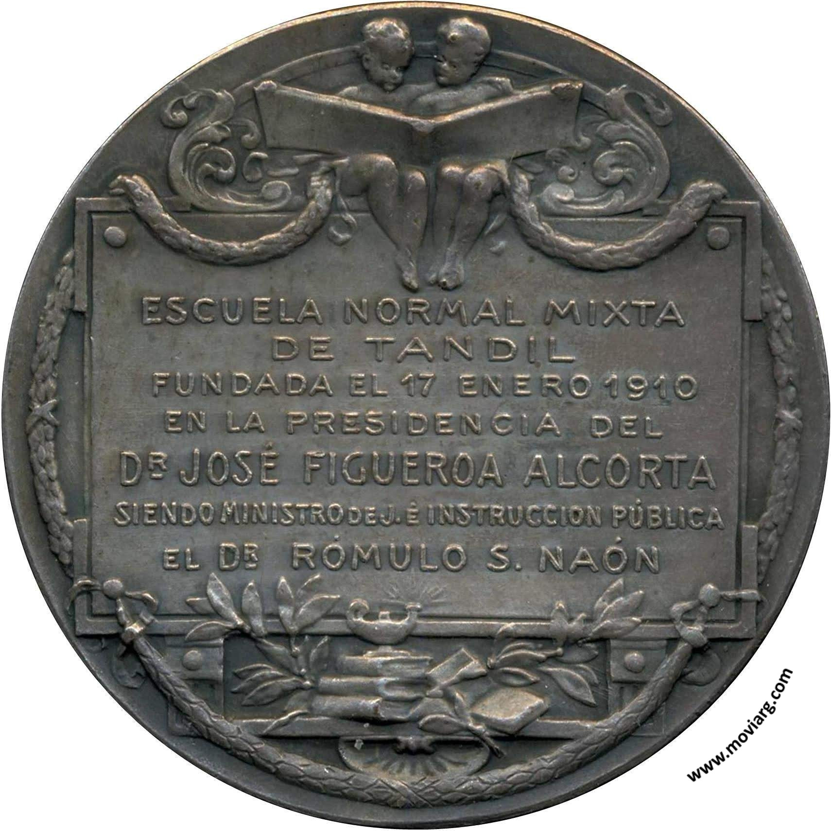 Anverso: MANUEL BELGRANO Reverso: ESCUELA NORMAL MIXTA / DE TANDIL / FUNDADA EL 17 ENERO 1910 / EN LA PRESIDENCIA DEL / DR. JOSÉ FIGUEROA ALCORTA / SIENDO MINISTRO DE J. É INSTRUCCION PÚBLICA / EL DR. RÓMULO S. NAÓN Referencia: | |