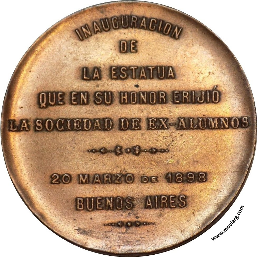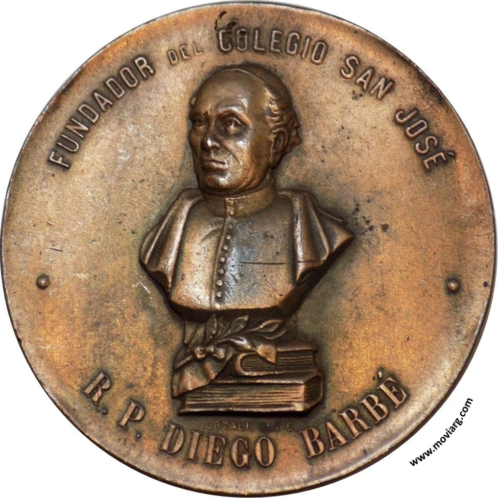 Anverso: FUNDADOR DEL COLEGIO SAN JOSÉ / R. P. DIEGO BARBÉ. Firma: ORZALI B. Y C. Reverso: INAUGURACION / DE / LA ESTATUA / QUE EN SU HONOR ERIJIÓ / LA SOCIEDAD DE EX-ALUMNOS / 20 MARZO DE 1898 / BUENOS AIRES Referencia: | |