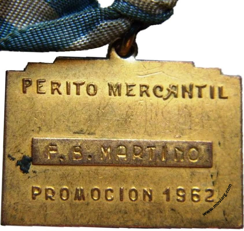 Anverso: LIBEROS COMMERCIUM / - AD SUPEROS TRAHIT - / ESC. N. DE C. / GRAL. URQUIZA. Firma: O. GALLO Reverso: PERITO MERCANTIL / [ F. S. MARTINO ] / PROMOCION 1962 Referencia: | |