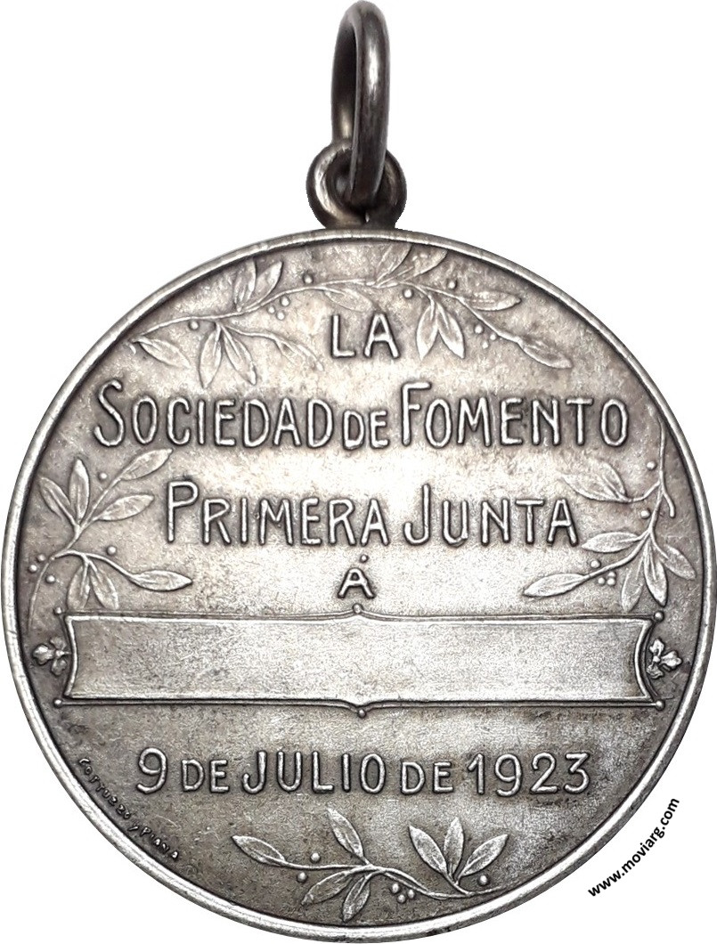 Colección MDS Anverso: 1810 / PRIMERA JUNTA / 1910Reverso: LA / SOCIEDAD DE FOMENTO / PRIMERA JUNTA / Á / 9 DE JULIO DE 1923. Firma: GOTTUZZO Y PIANA Referencia: | |