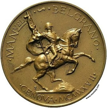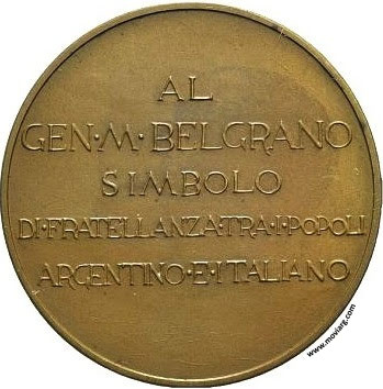 Anverso: MANUEL BELGRANO GENOVA MCMXXVII Reverso: AL / GEN. M. BELGRANO / SIMBOLO / DI FRATELLANZA TRA I POPOLI / ARGENTINO E ITALIANO Referencia: | |