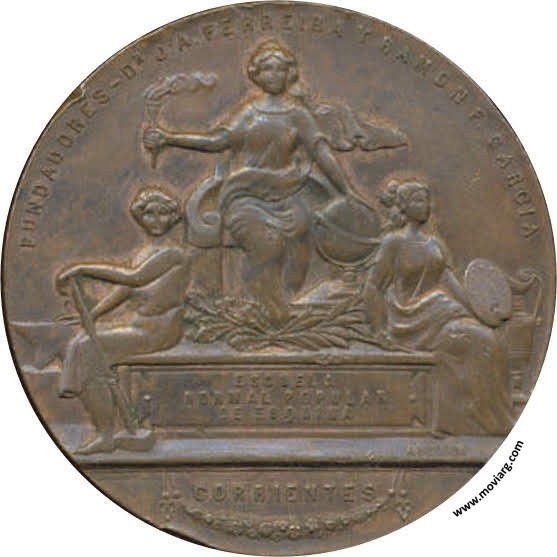 Anverso: ESCUELA / NORMAL POPULAR / DE ESQUINA / CORRIENTES / FUNDADORES - DR. J. A. FERREIRA Y RAMON F. GARCIA. Firma: A. BIDOGLIA Reverso: GOBERNACION DEL DR. J. E. MARTINEZ / INAUGURACION / DEL / EDIFICIO ESCOLAR / 15 DICIEMBRE / 1900 / PCIA. DEL CO. SR. DE EN. DEL P. A. C. BASSI Referencia: | |
