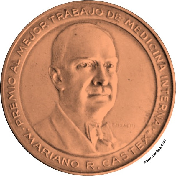 Anverso: PREMIO AL MEJOR TRABAJO DE MEDICINA INTERNA / " MARIANO R. CASTEX ". Firma: (???) Reverso: ACADEMIA NACIONAL DE MEDICINA DE BUENOS AIRES / REPUBLICA ARGENTINA / 1913 - 26 XI - 1938 / DISCIPULOS, AMIGOS, / COLEGAS Y ADMIRADORES. Firma: (???) Referencia: | |