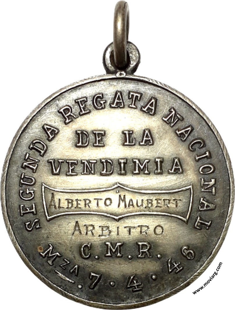 Colección MDS Anverso: Anilla: [ 800 ]. Firma: KReverso: SEGUNDA REGATA NACIONAL / DE LA / VENDIMIA / [ ALBERTO MAUBERT ] / [ ARBITRO ] / C.M.R. / MZA. 7 · 4 · 46 Referencia: | |