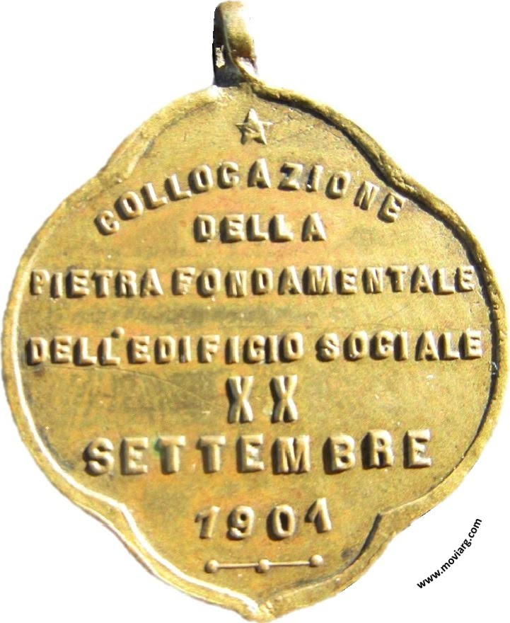 Anverso: SOCIETÁ ITALIANA DI M.S. / UNIONE / E BENEVOLENZA / LAS FLORES Reverso: COLLOCAZIONE / DELLA / PIETRA FONDAMENTALE / DELL'EDIFICIO SOCIALE / XX / SETTEMBRE / 1901 Referencia: | |