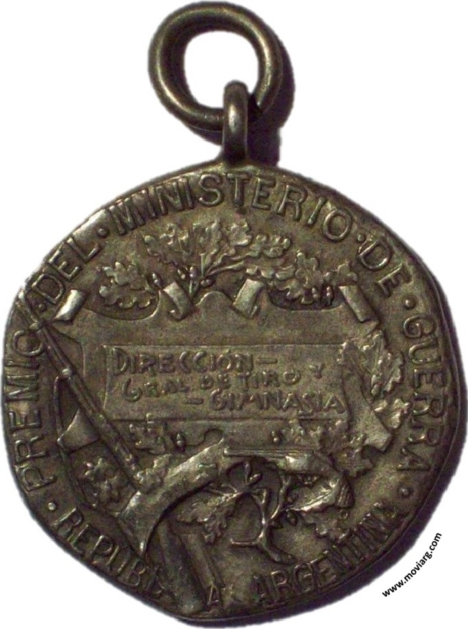 Anverso: Firma: C. Y AF. ROSSI Reverso: PREMIO DEL MINISTERIO DE GUERRA / REPUBLICA ARGENTINA / DIRECCION / GRAL. DE TIRO Y / GIMNASIA Referencia: | |