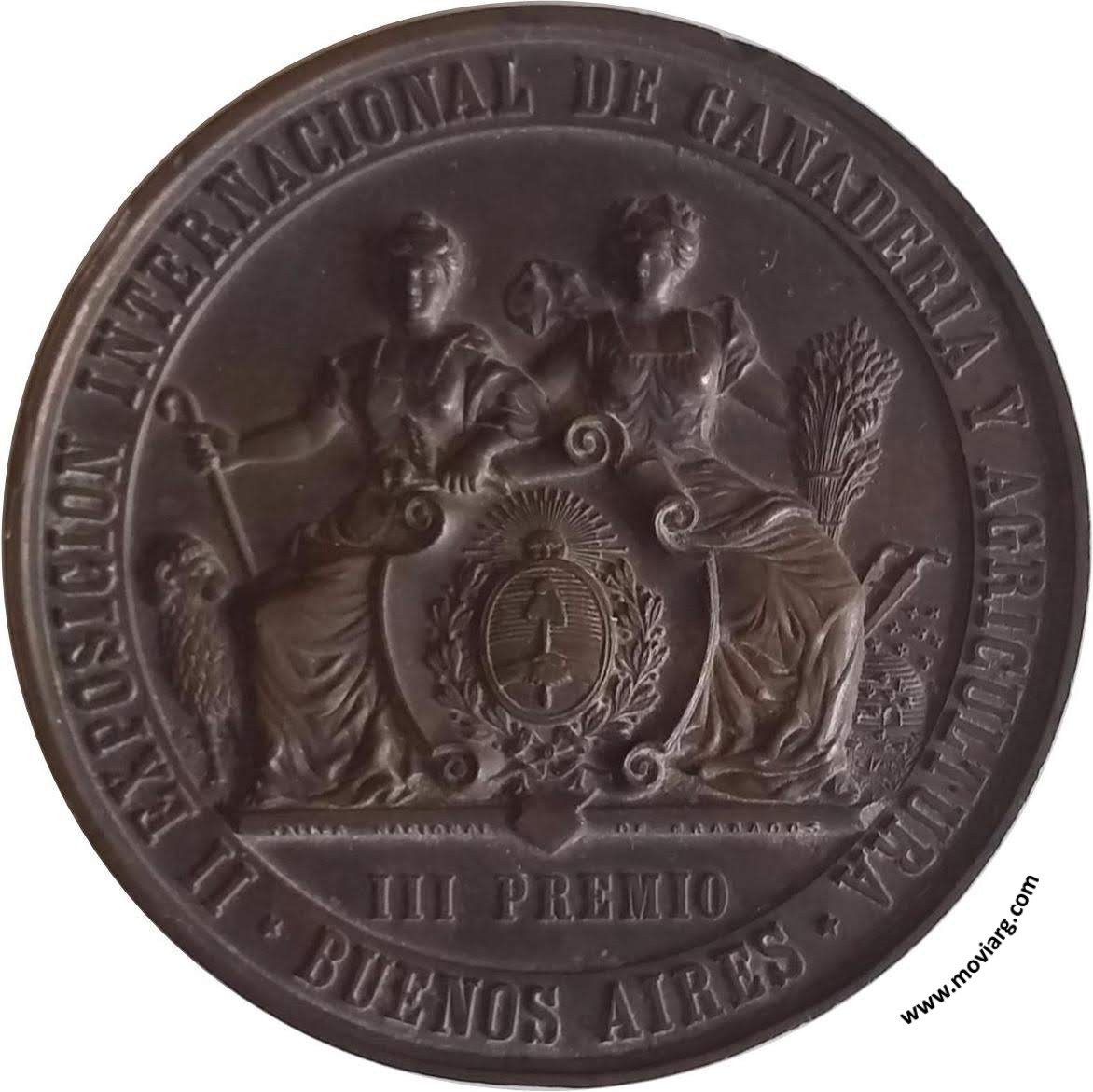 Anverso: II EXPOSICION INTERNACIONAL DE GANADERIA Y AGRICULTURA / BUENOS AIRES / III PREMIO. Firma: TALLER NACIONAL / DE GRABADOS Reverso: SOCIEDAD RURAL ARGENTINA / MDCCCXC Canto: Liso. Humberto Burzio: "Buenos Aires en la medalla" 1981 p446. Referencia: BURZIO-1300 | |