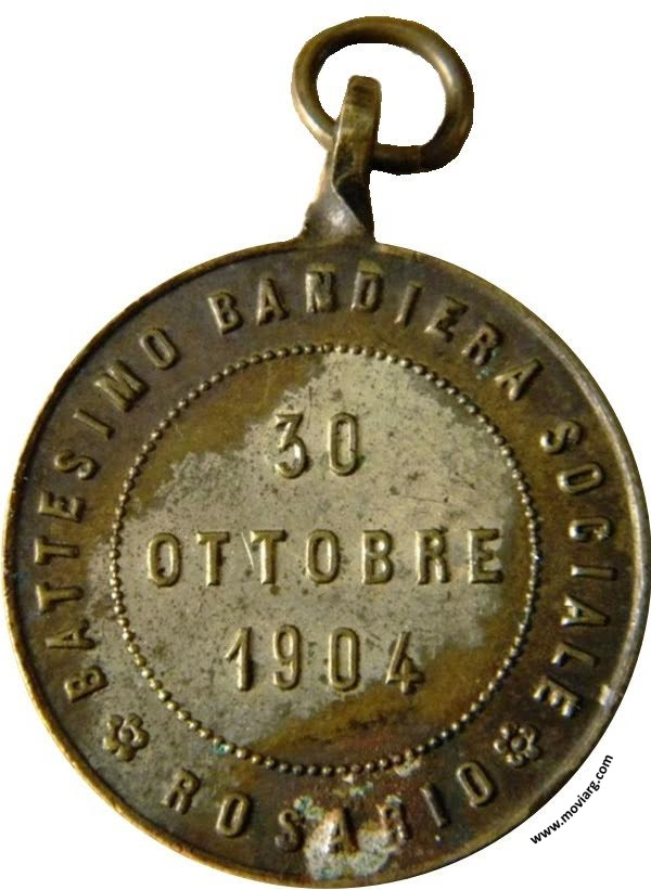 Anverso: SOCIETÁ ITALIANA DI MO. SO. VITTORIO EMANUELE III Reverso: BATTESIMO BANDIERA SOCIALE / ROSARIO / 30 / OTTOBRE / 1904 Referencia: | |