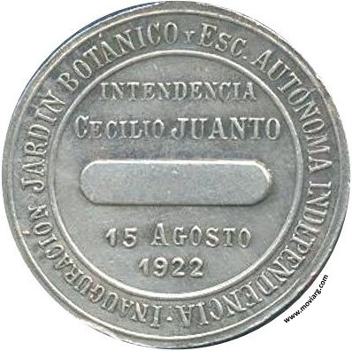 rosfil1 Anverso: MUNICIPALIDAD DEL ROSARIO DE SANTA FÉ. Firma: GIROLA GALLOReverso: INAUGURACIÓN JARDIN BOTÁNICO Y ESC. AUTONÓMA INDEPENDENCIA / INTENDENCIA / CECILIO JUANTO / 15 AGOSTO / 1922 Referencia: | |