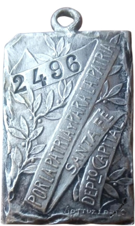 Anverso: Reverso: [ 2496 ] / POR LA PATRIA Y PARA LA PATRIA / SANTA FE / DEPTO. CAPITAL. Firma: GOTTUZZO Y CA. Referencia: | |