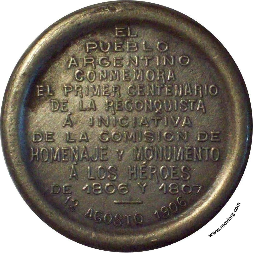 Anverso: Firma: BELLAGAMBA Y ROSSI Reverso: EL / PUEBLO / ARGENTINO / CONMEMORA / EL PRIMER CENTENARIO / DE LA RECONQUISTA / Á INICIATIVA / DE LA COMISION DE / HOMENAJE Y MONUMENTO / Á LOS HÉROES / DE 1806 Y 1807 / 12 AGOSTO 1906 Referencia: | |