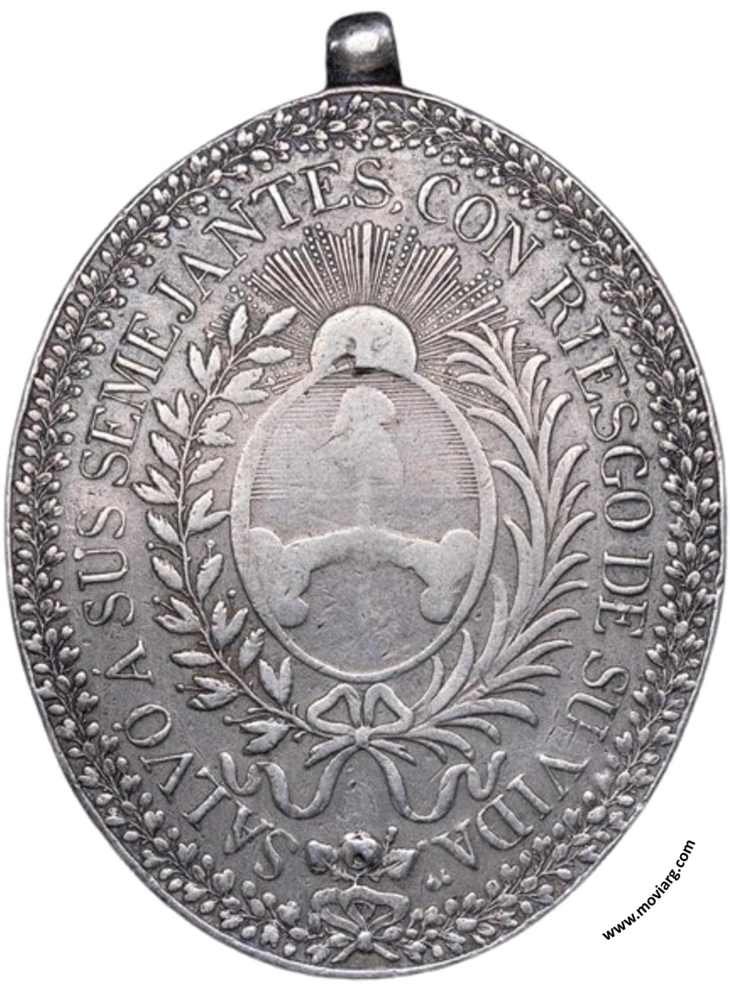 Anverso: 1836 - CANARIOS / A PUNTO DE / PERECER Reverso: SALVÓ Á SUS SEMEJANTES CON RIESGO DE SU VIDA Referencia: BURZIO-5365 ROSA-/26 | |
