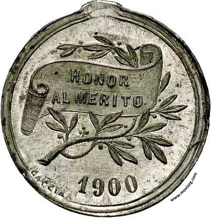| Año: 1900 Tiro Metal: Peltre - Peso: 6.4gr - Rotación: 12hrs Grabador: Santiago Caccia | |