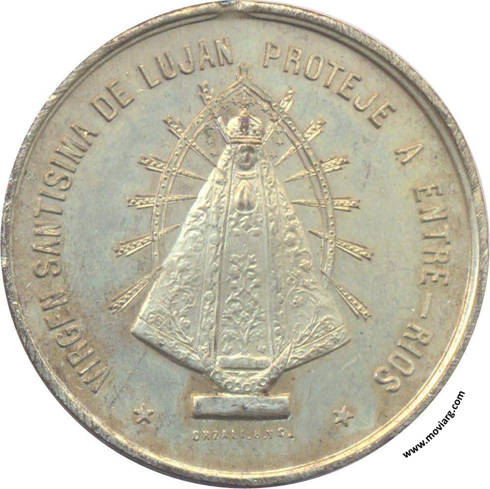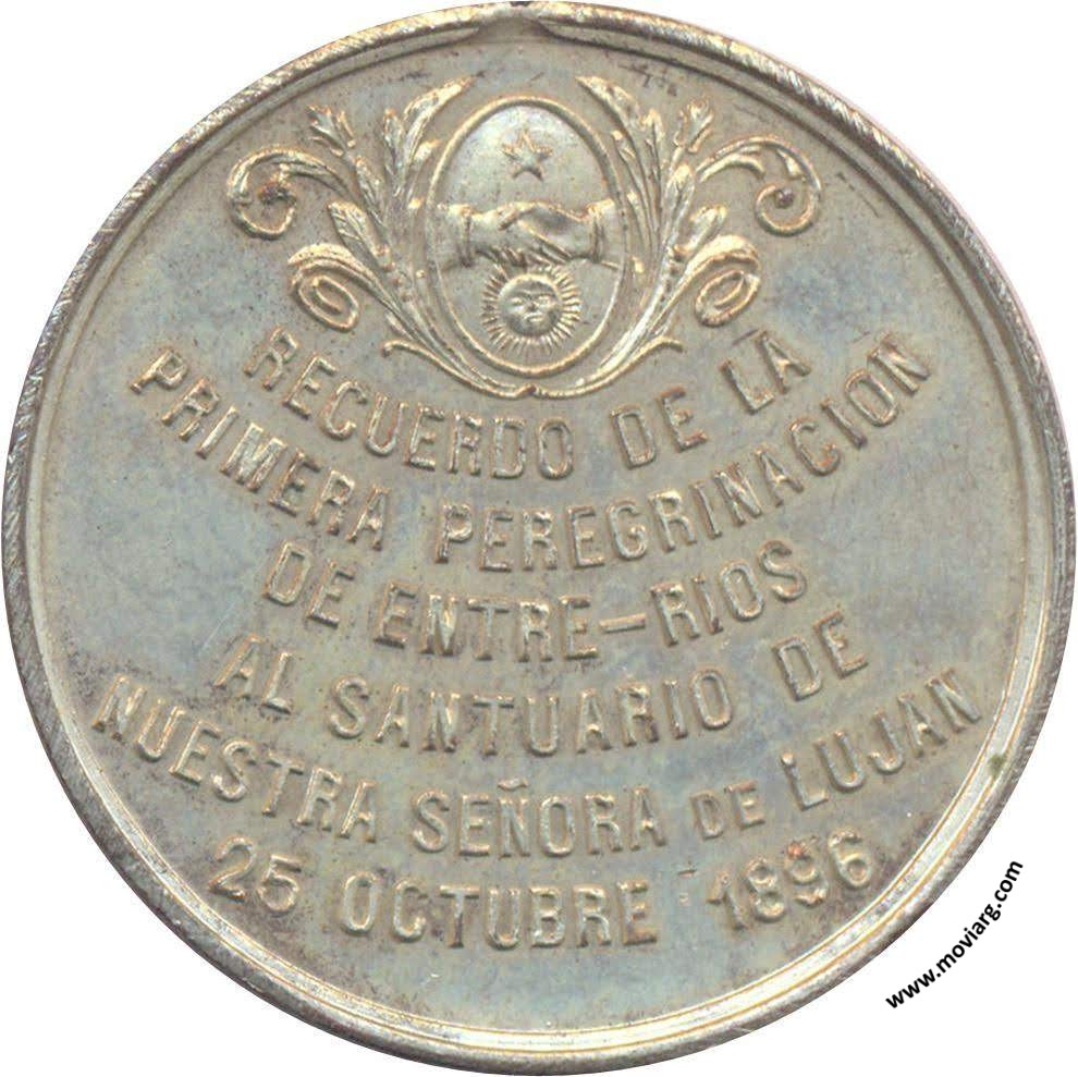 Anverso: VIRGEN SANTISIMA DE LUJAN PROTEJE A ENTRE-RIOS. Firma: ORZALI B. Y C. Reverso: RECUERDO DE LA / PRIMERA PEREGRINACION / DE ENTRE-RIOS / AL SANTUARIO DE / NUESTRA SEÑORA DE LUJAN / 25 OCTUBRE 1896 Referencia: | |