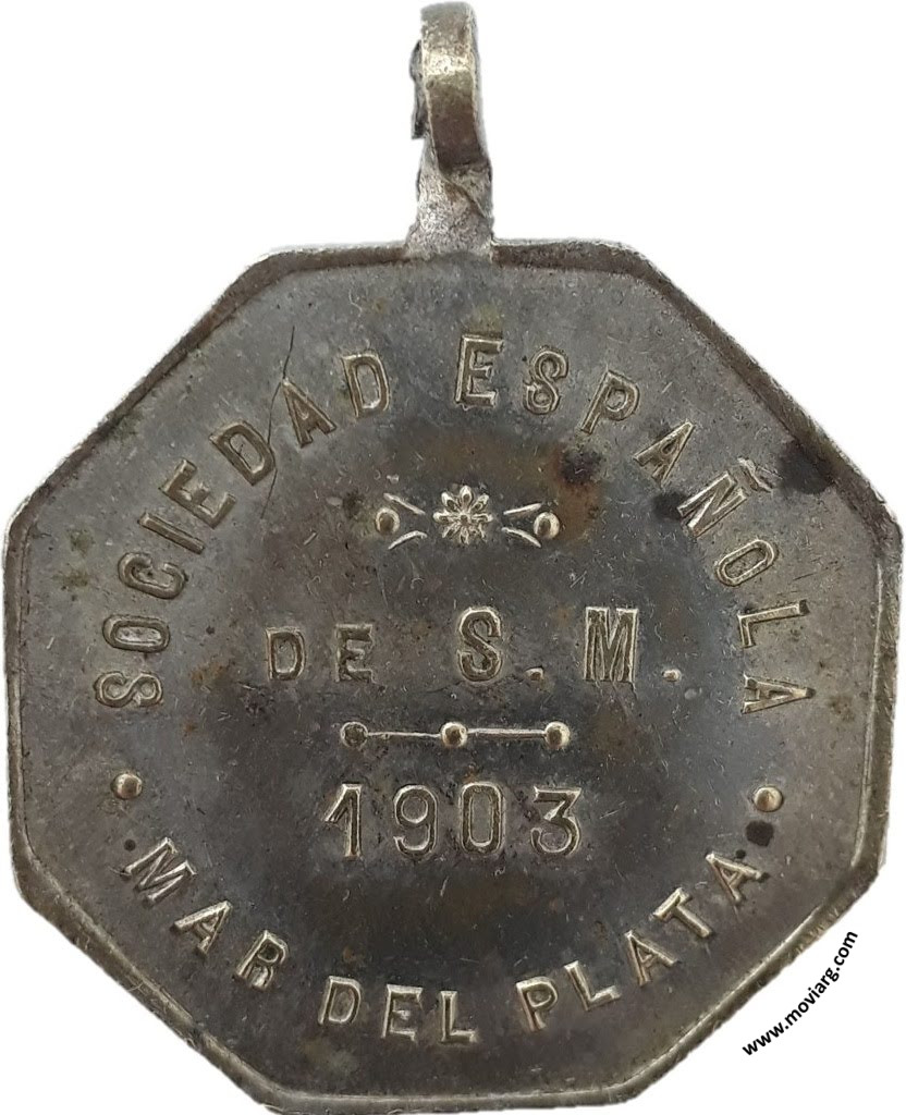 Anverso: Campo: ROMERIAS / ESPAÑOLAS Reverso: SOCIEDAD ESPAÑOLA / DE S. M. / 1903 / MAR DEL PLATA Referencia: | |