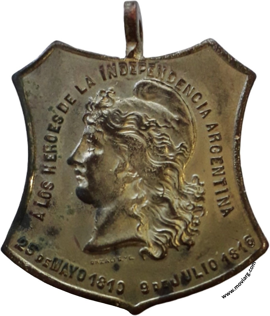 Colección MDS Anverso: A LOS HEROES DE LA INDEPENDENCIA ARGENTINA / 25 DE MAYO 1810 9 DE JULIO 1816. Firma: ORZALI B. Y C.Reverso: LAS SOCIEDADES NACIONALES Y ESTRANJERAS (sic) / CONMEMORAN LAS FIESTAS PATRIAS / SANTA FÉ 25 DE MAYO 1897 Referencia: | |