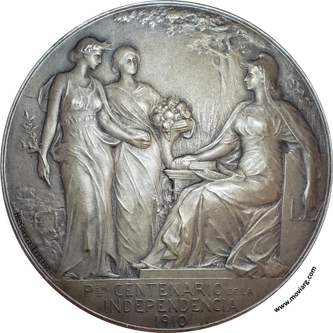 Anverso: REPUBLICA ARGENTINA / 25 DE / MAYO / 1810. Firma: HIPPOLYTE LEFEBVRE Reverso: PER. (Primer) CENTENARIO DE LA / INDEPENDENCIA / 1910. Firma: HIPPOLYTE LEFEBVRE Canto: Liso. ARGENT Referencia: | |