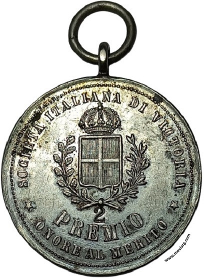 Anverso: HONOR AL MERITO / [ 1879/80 ] Reverso: SOCIETÁ ITALIANA DI VICTORIA / [ 2 ] / PREMIO / ONORE AL MERITO Referencia: | |