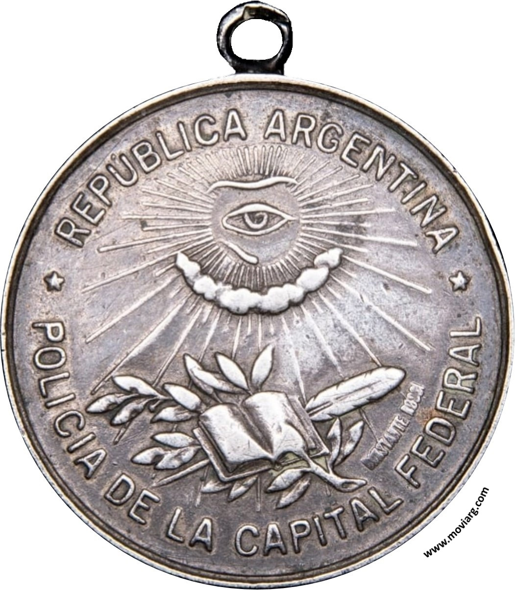 | Año: 1933 Policía, Bomberos e Inspectores Metal: Plata - Rotación: 12hrs Grabador: Constante Rossi | |