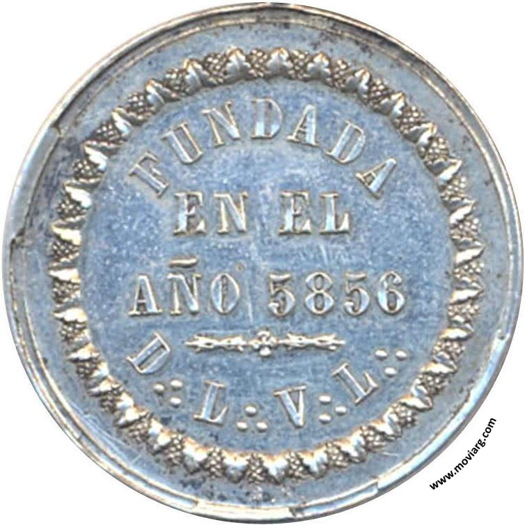 Anverso: AUG .·. LOG .·. CONFRATERNIDAD ARGENTINA Reverso: FUNDADA / EN EL / AÑO 5856 / D .·. L .·. V .·. L .·. Referencia: BURZIO-4159 FERRARI-296 (RG) | |