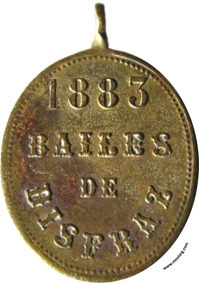 | Año: 1883 Fiestas y Carnavales Metal: Cobre - Módulo: 23x29mm - Rotación: 12hrs | |