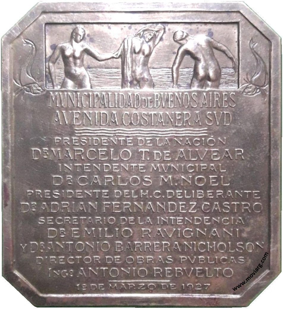 Anverso: Firma: C. DE LA CARCOVA Reverso: MUNICIPALIDAD DE BUENOS AIRES / AVENIDA COSTANERA SUD / PRESIDENTE DE LA NACIÓN / DR. MARCELO T. DE ALVEAR / INTENDENTE MUNICIPAL / DR. CARLOS M. NOEL / PRESIDENTE DEL H. C. DELIBERANTE / DR. ADRIAN FERNANDEZ CASTRO / SECRETARIO DE LA INTENDENCIA / DR. EMILIO RAVIGNANI / Y DR. ANTONIO BARRERA NICHOLSON / DIRECTOR DE OBRAS PÚBLICAS / INGO. ANTONIO REBUELTO / 1° MARZO DE 1927 Referencia: | |
