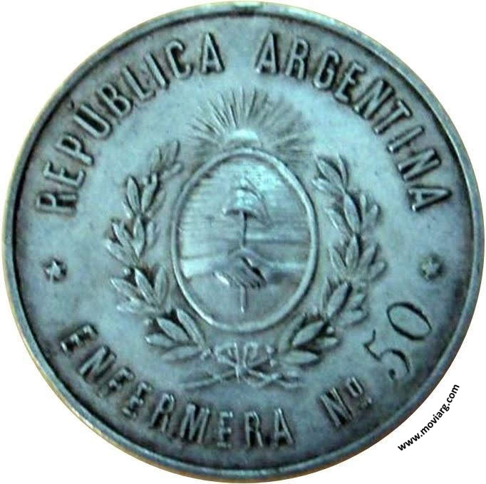 Anverso: REPÚBLICA ARGENTINA / ENFERMERA N° [ 50 ] Reverso: ASISTENCIA PÚBLICA / ESCUELA / DE / ENFERMEROS / Y / ENFERMERAS Referencia: | |