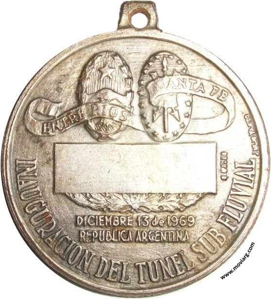 Anverso: SANTA FE / PARANA Reverso: INAUGURACION DEL TUNEL SUB FLUVIAL / DICIEMBRE 13 DE 1969 / REPUBLICA ARGENTINA. Campo: ENTRE RIOS / SANTA FE. Firma: O. GALLO / JULIO VANZO Referencia: | |