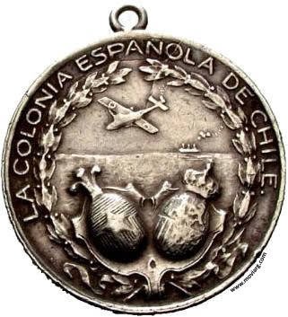 Anverso: 1926 / ALDA / RADA / DURAN / PLUS / ULTRA / PALOS DE MOGUER - BUENOS AIRES / FRANCO Reverso: LA COLONIA ESPAÑOLA EN CHILE Referencia: | |