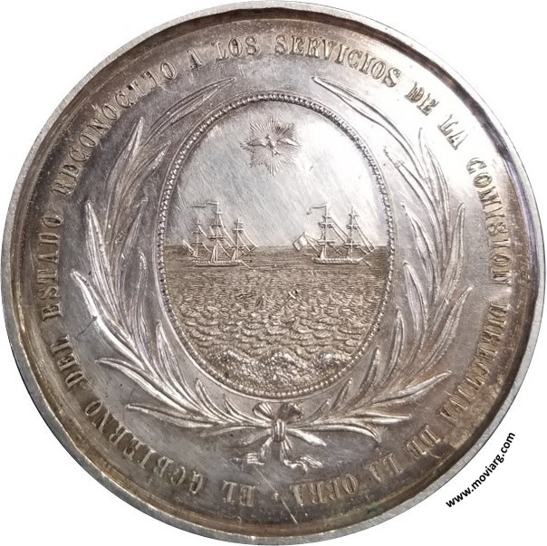| Año: 1857 Obras y Servicios Públicos Metal: Plata - Módulo: 47mm Grabador: Carlos Guillaume | |