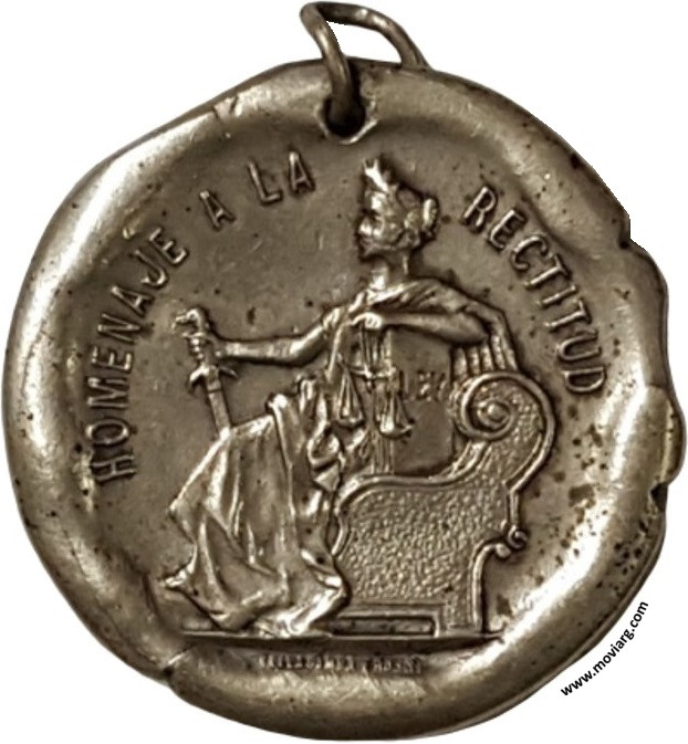 Anverso: HOMENAJE A LA RECTITUD. Firma: BELLAGAMBA Y ROSSI Reverso: EL VECINDARIO / Á / PEDRO LANDI / JUEZ DE LA PAZ / DEPARTAMENTO 3° / PAMPA CENTRAL / 1899 - 1901 Referencia: | |