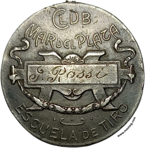 Anverso: VOLUNTAD Y FUERZA. Firma: C. Y AF. ROSSI Reverso: CLUB / MAR DEL PLATA / ESCUELA DE TIRO / [ J. ROSSI ] Canto: Liso. PLATA Referencia: | |