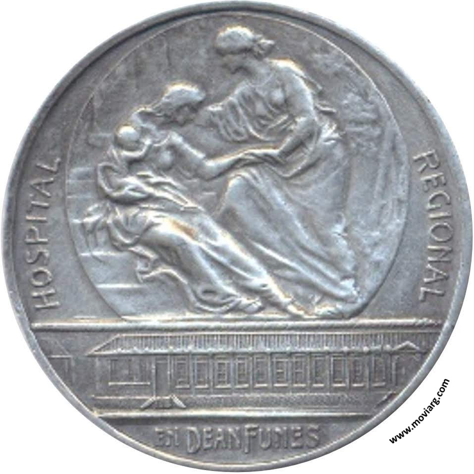 Anverso: HOSPITAL / REGIONAL / EN DEAN FUNES Reverso: EXMO. SEÑOR / DR. JULIO C. BORDA / GOBERNADOR DE CÓRDOBA / INGENIERO / CARLOS ARCAÑARÁZ / MINISTRO / DE OBRAS PÚBLICAS / MAYO 1918. Firma: GOTTUZZO Y CA. Referencia: | |