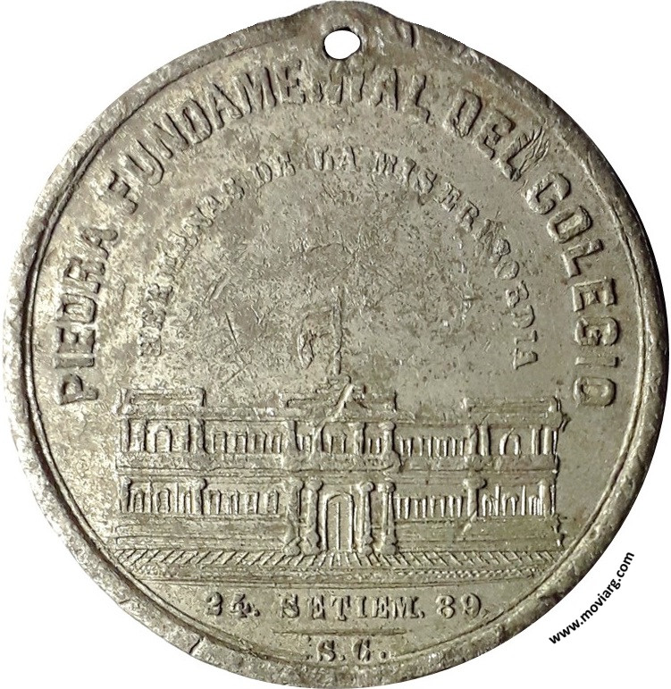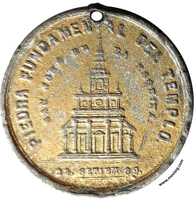 Anverso: PIEDRA FUNDAMENTAL DEL TEMPLO / SAN JOSE DE LA ESQUINA / 24. SETIEM. 89. Reverso: PIEDRA FUNDAMENTAL DEL COLEGIO / HERMANAS DE LA MISERICORDIA / 24. SETIEMB. 89. Firma: S. C. Referencia: FERRARI-77 (SC) | |