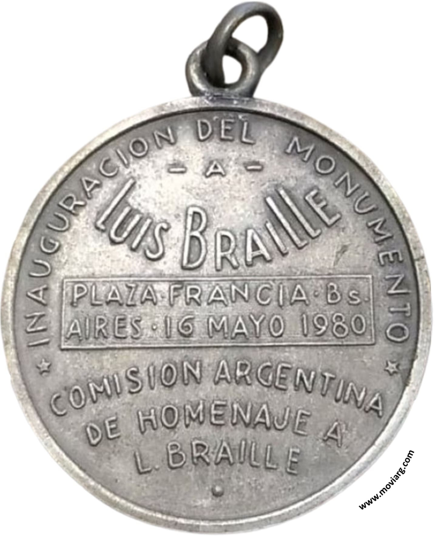Anverso: BRAILLE. Firma: (???) Reverso: INAUGURACION DEL MONUMENTO / A / LUIS BRAILLE / PLAZA FRANCIA BS. / AIRES · 16 MAYO 1980 / COMISION ARGENTINA / DE HOMENAJE A / L. BRAILLE Referencia: | |